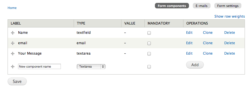 - Here you could build whatever fields you needed for your form, drop down lists, checkboxes etc. for now we’ll keep it simple and just add a text field for name, an email field so we know who to reply to and a text area box for the message.